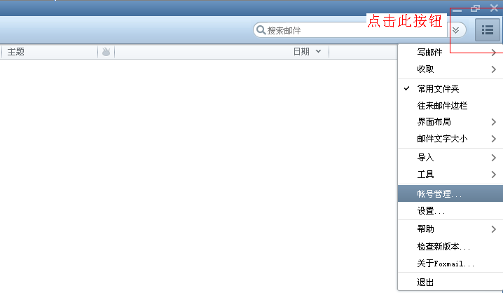 1. 点击Foxmail7.1页面右上角菜单按钮,在下拉框中找到“账户管理”;