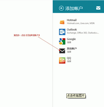 win8/Surface RT平板的邮箱设置步骤:设置→账户→添加账户→其他账户→邮箱地址及密码